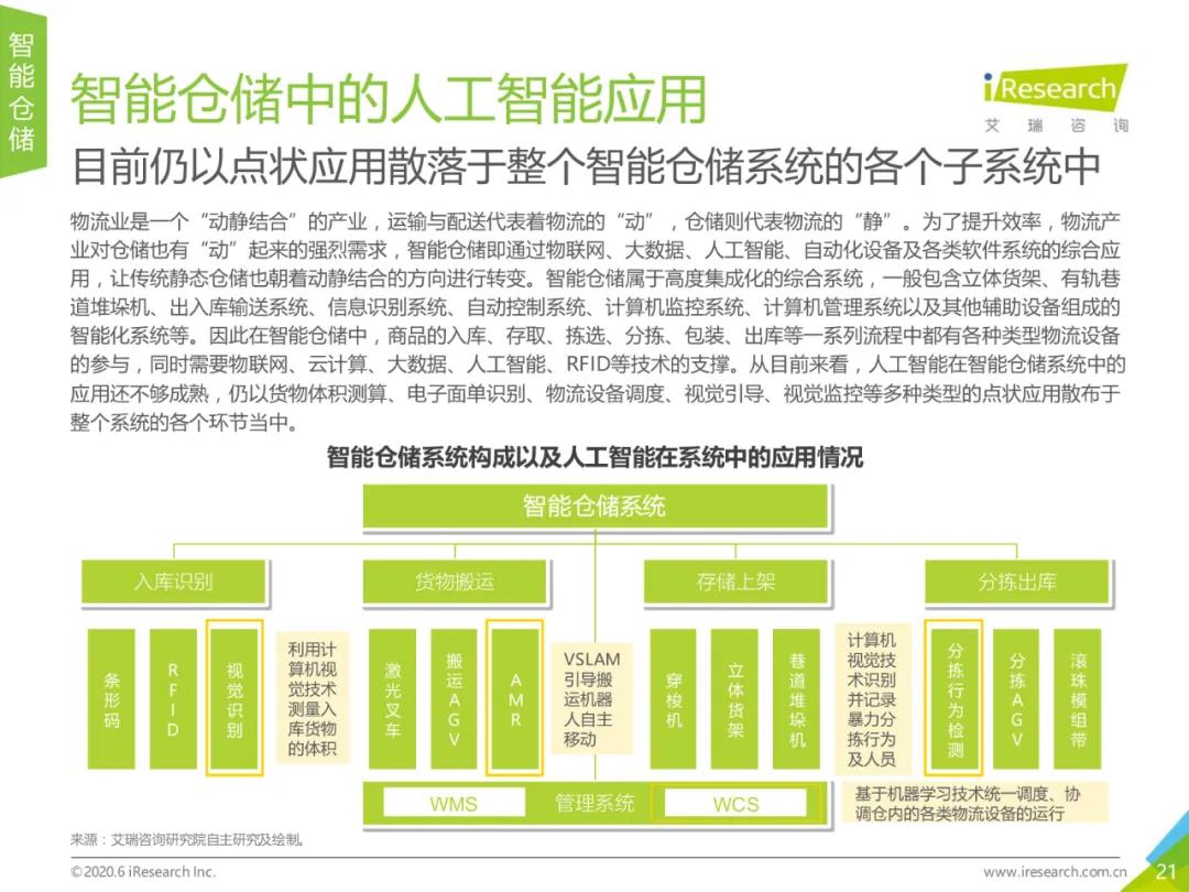 报告对“人工智能+物流”的研究范围主要集中在物流活动中的运输、仓储、配送及客服四个环节,分析研究人工智能技术及产品在上述物流作业流程中的应用情况及效果。